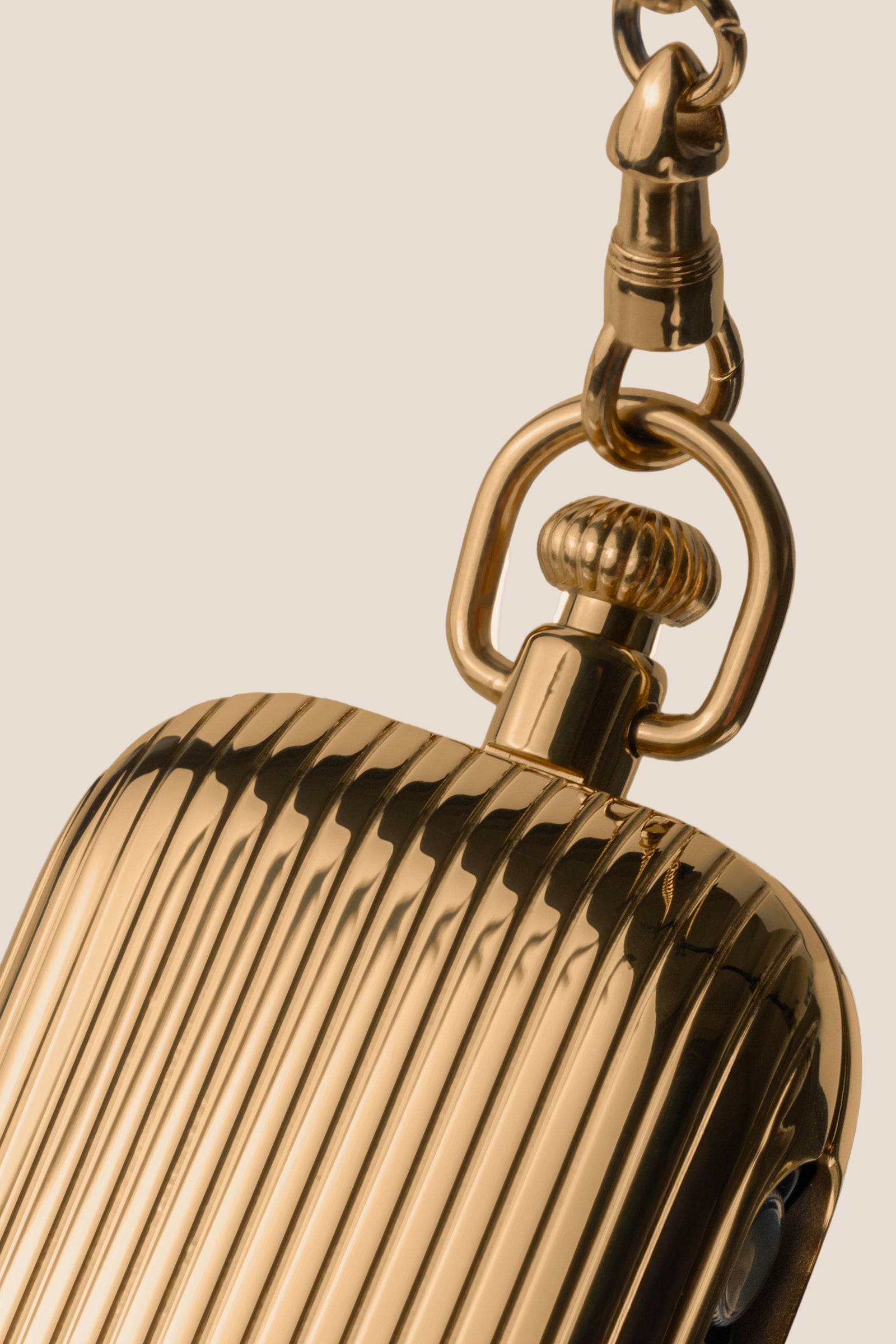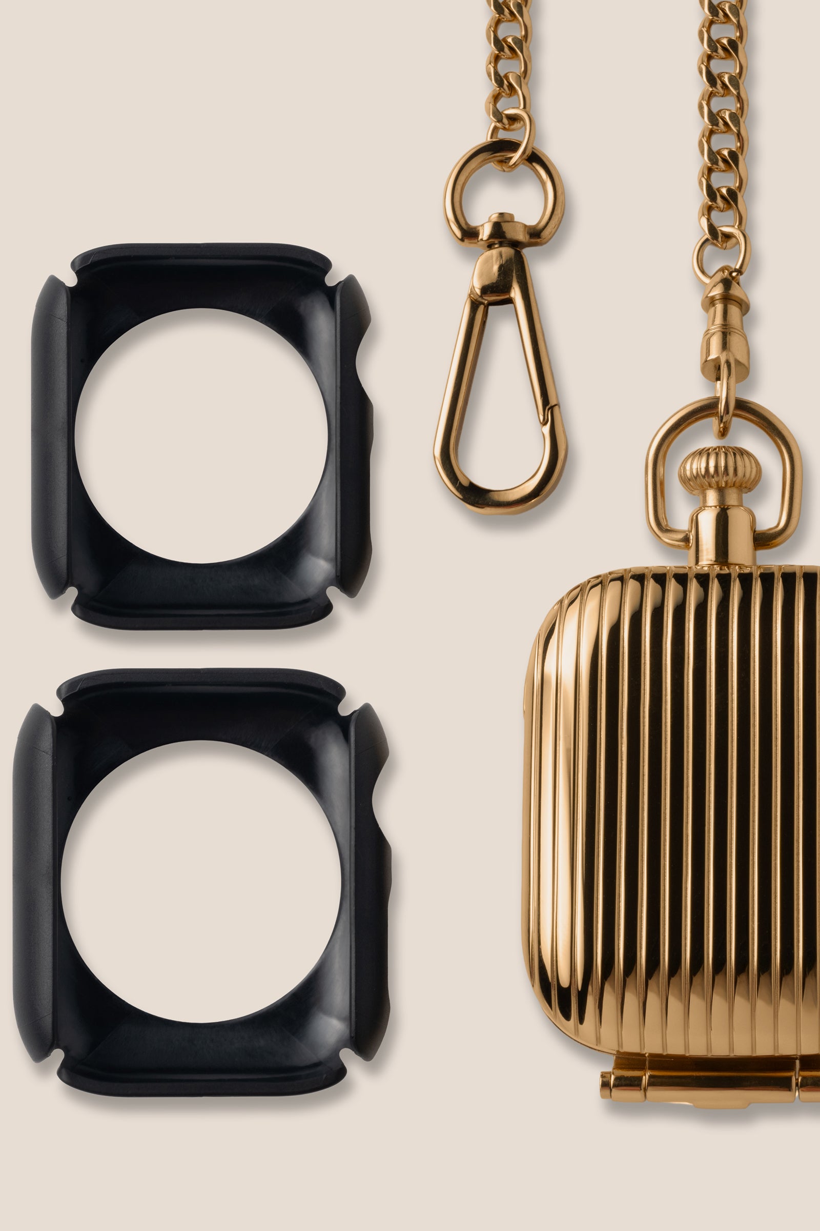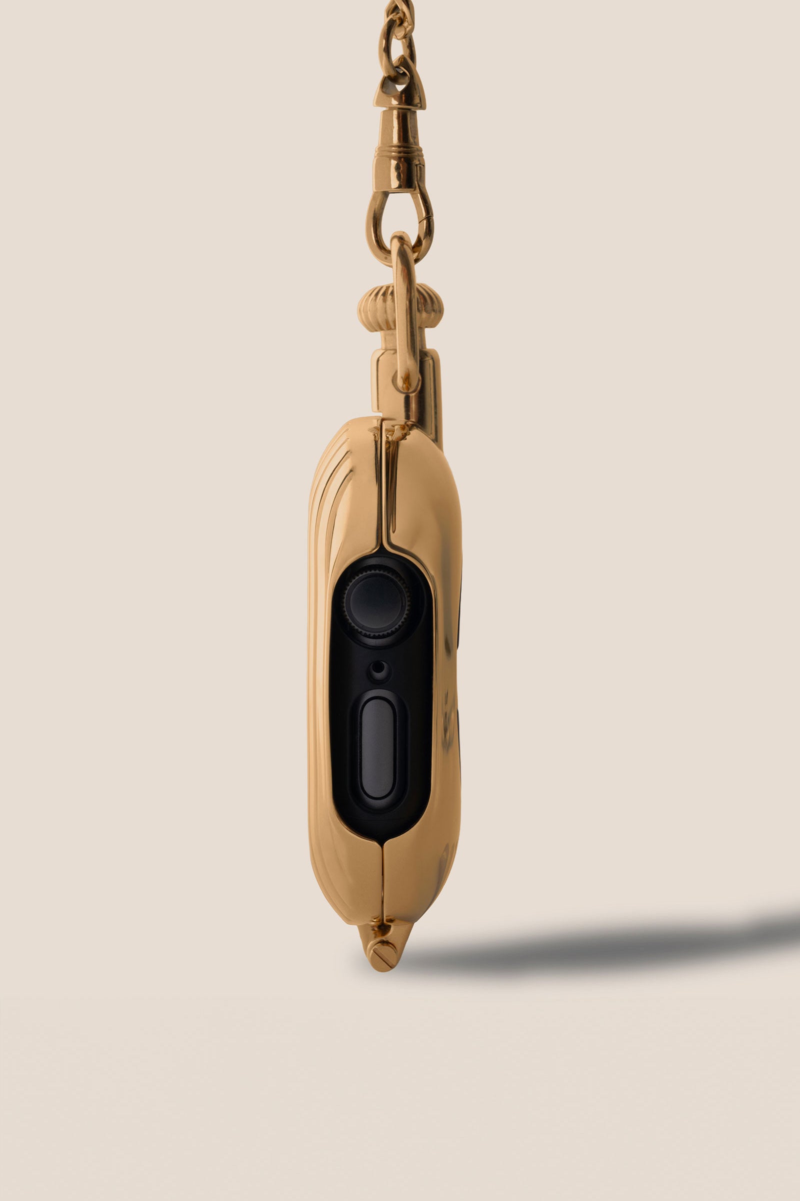 Our pocket watch accessory has recently been updated and now features an interior adapter system that secures your Apple Watch within the stainless steel casing.
