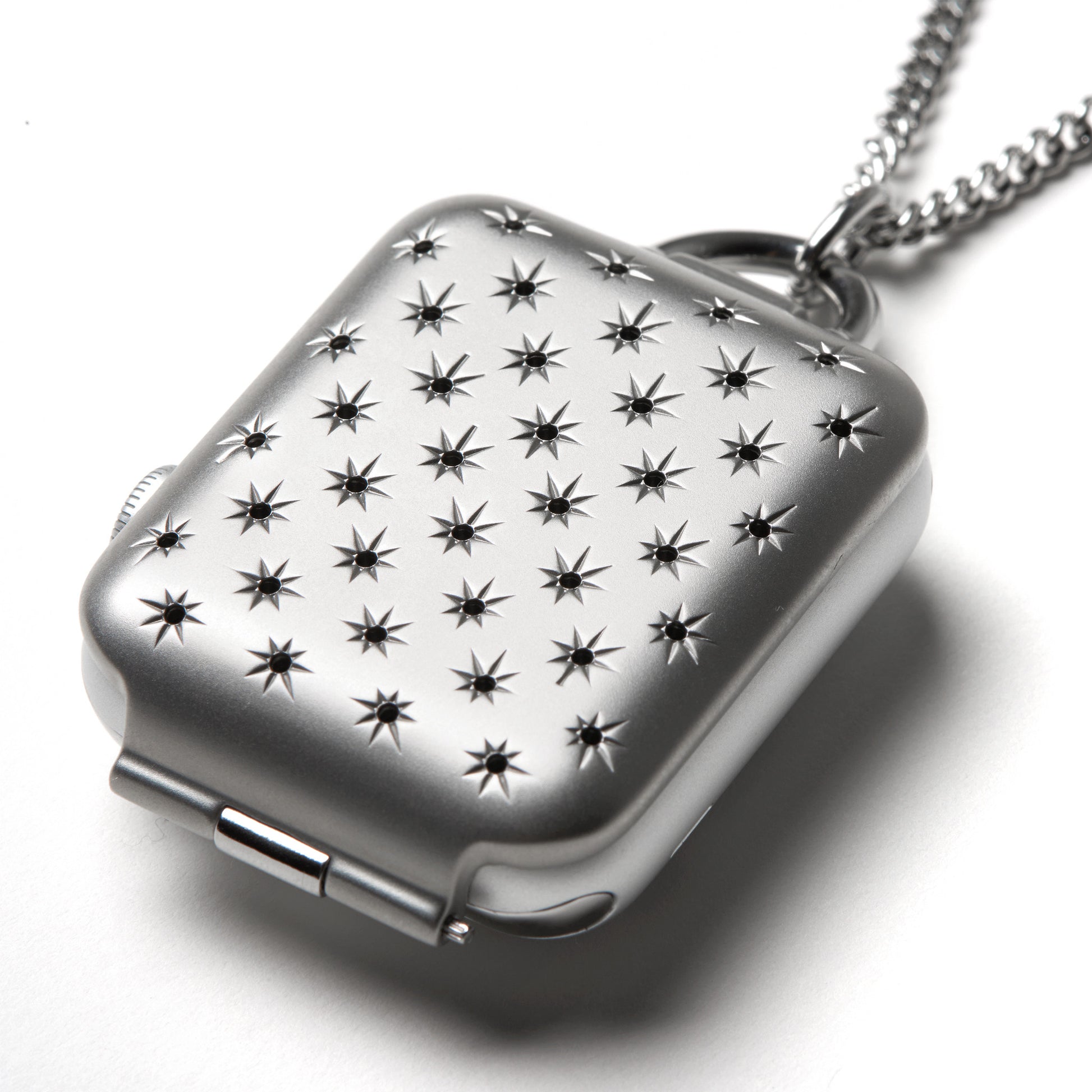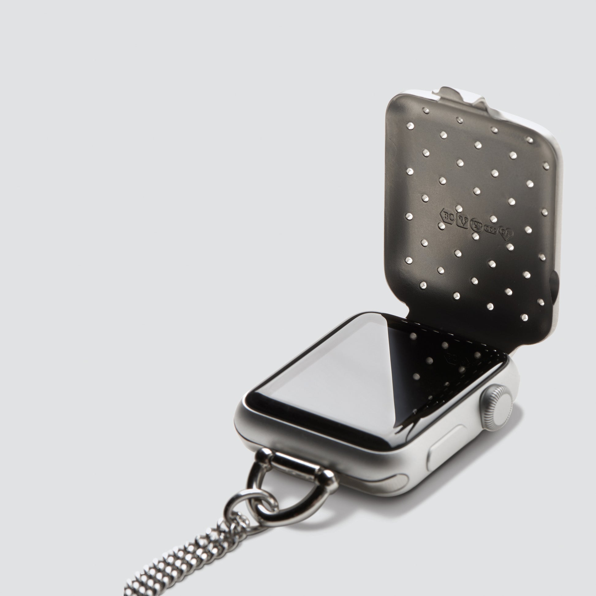Transform your Apple Watch into a locket necklace. This Bucardo accessory fits into the band slots of the Apple Watch; simply slide your wrist bands out and slide your Bucardo locket accessory in. Enjoy and wear your Apple Watch in a different way.